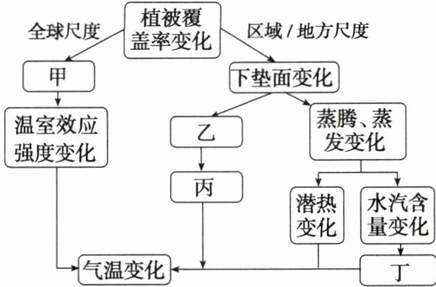 )①碳吸收、排放变化 ②地表反射率变化 ③大气逆辐射变化 ④地面吸收的太阳辐射变化 ⑤到达地面的太阳辐射变化