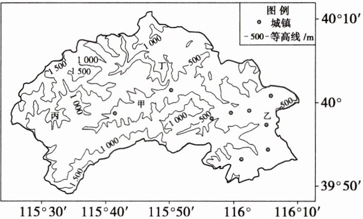 (2024·湖北黄石联考)2023年7月29日20时至8月2日7时,受台风“杜苏芮”残余势力影响,京津冀地区发生极端暴雨事件,北京市气象局称其为“140年以来最大降雨量”。北京市门头沟地区是这次极端暴雨的重灾区。下图示意北京市门头沟地区等高线分布。据此完成3~4题。