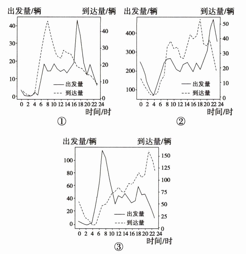 (2024·北京东城区一模)出租车需求与人类活动有着密切的关系。下图为我国某市不同区域出租车信息统计图。读图,完成1~2题。