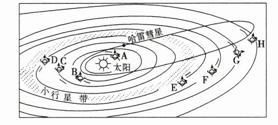(1)写出上图中字母所代表的三类行星:类地行星包括 A _________、B _________、C _________、D _________;巨行星包括 E _________、F _________
