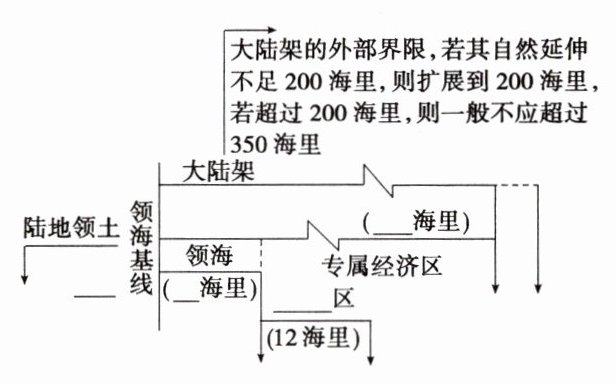 第5题,内水是指国家领海基线向陆地一侧的水域,包括河流及其河口、湖泊、港口、内海和历史性海湾等,排除A;领海是从领海基线量起最大宽度不超过12海里的一带水域,排除B;毗连区是指沿海国领海以外并毗邻领海,由沿海国对其海关、财政、卫生和移民等类事项行使管辖权的一定宽度的海洋区域,毗连区从领海基线量起不超过24海里,排除C;专属经济区是指从测算领海基线量起不应超过200海里、在领海之外并邻接领海的一个区域,D正确。第6题,我国海工装备不断向“深海”“远海”推进有利于开发海洋资源,缓解我国资源紧张状况,①正确;对海洋进行开发会破坏海洋生态环境,排除②;解决国家海洋利益争端需要国家间政府协商,排除③;对海洋资源的开发有利于维护我国的海洋权益,④正确。故选B。