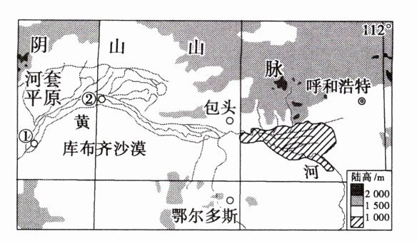 3. 当地政府在①②两地修建了水利枢纽来引黄河水灌溉。从可用水量和经济角度判断,最适合作为总引水口的选址地点及原因是 (