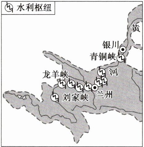 黄河上游龙羊峡至青铜峡河段(下图),水能资源丰富,被誉为我国水电建设中的“富矿”。据此完成1~2题。
