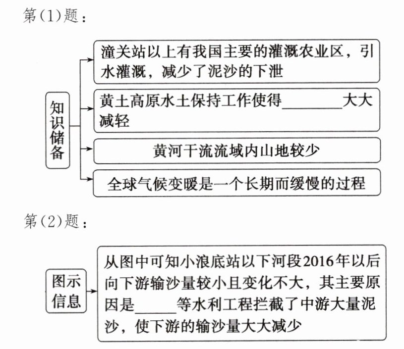 (2)2016年以后,黄河下游输沙量较中游明显减少的主要影响因素是 (
