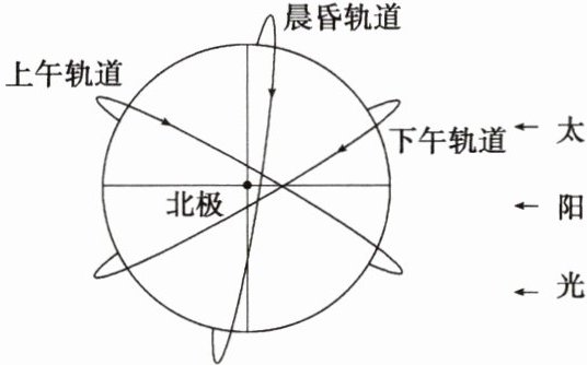 综合思维:结合晨昏线(圈)的特点,思考在晨昏轨道运行的 E 卫星的运行状况。