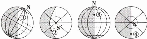 读下面四幅图(图中阴影区为黑夜),完成 4~5 题。