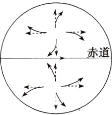 6.绘图:结合沿地表水平运动物体的运动方向的偏转规律,在下图中用实线箭头画出物体运动的实际方向。