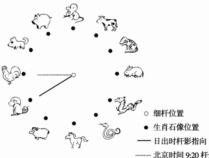 6. 11月至次年2月,一日内被杆影指向的生肖石像个数最多为 (