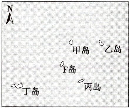 (2024·山东卷)小明暑假乘船到F岛旅游。下船后,小明发现太阳当空,周围的人却“没有”影子,他记录了当时的时间为北京时间8月21日00:04。当地时间下午,小明从F岛乘船去往某岛屿观光,途中发现游船甲板中心处旗杆的影子多数时间指向船行进的方向。下图示意F岛及其周边区域。据此完成1~2题。