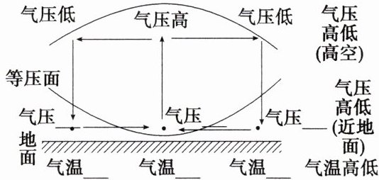1.填图:在下图中填出近地面的气温和气压高低状况。