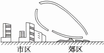城市热岛是指城市中的气温明显高于外围郊区的现象,是城市和郊区之间热力环流形成的基础。城市下垫面和人类活动等是形成城市热岛效应的主要因素。下图示意市区和郊区热力环流。据此完成7~8题。