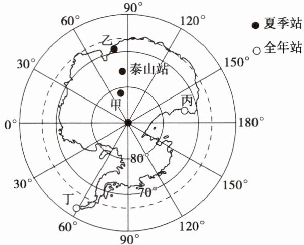 (2024·湖南长沙模拟)2024年2月7日,中国第5个南极考察站——秦岭站开站,该站位于南极大陆沿海,面向太平洋、有极昼极夜现象,是考察南极冰盖雪被、陆缘冰及海冰的理想之地,下图示意我