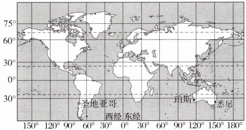 4. 某日孔老师乘坐航班从智利首都圣地亚哥(70°W,33°S)直飞澳大利亚城市悉尼(150°E,33°S),若飞