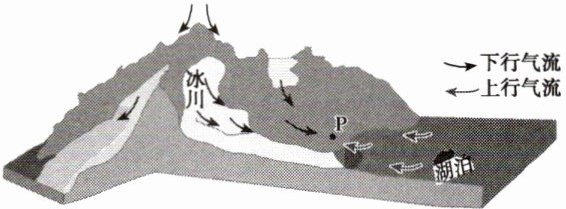 3. 若暖季上、下行气流常在图中P地附近交汇,则该地 (