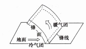 1.绘图:(画出一个锋,标出锋面、锋线、冷气团、暖气团以及冷气团和暖气团的运动方向)。