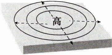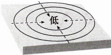 (2)画出北半球反气旋的水平气流(图中虚线为水平气压梯度力)与垂直气流的运动方向。