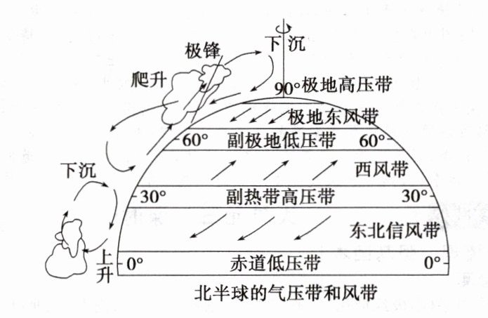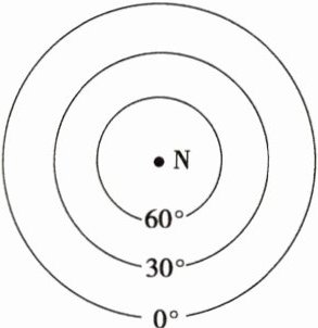 2.绘图:在下图中画一幅以北极为中心的“北半球风带”投影图。
