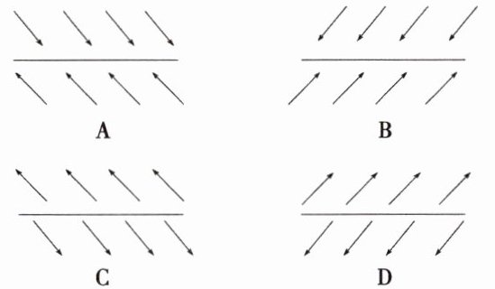 4.若该图表示北半球低纬环流,则下图中能正确反映甲地两侧大气运动的是 (