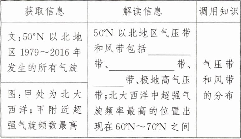 典例1(2022·广东卷,节选)某研究统计了50°N以北地区1979~2016年发生的所有气旋,并将中心气压值最低的前5%的气旋定义为超强气旋。下图示意该地区1979~2016年超强气旋总频数空间分布。据此完成下题。