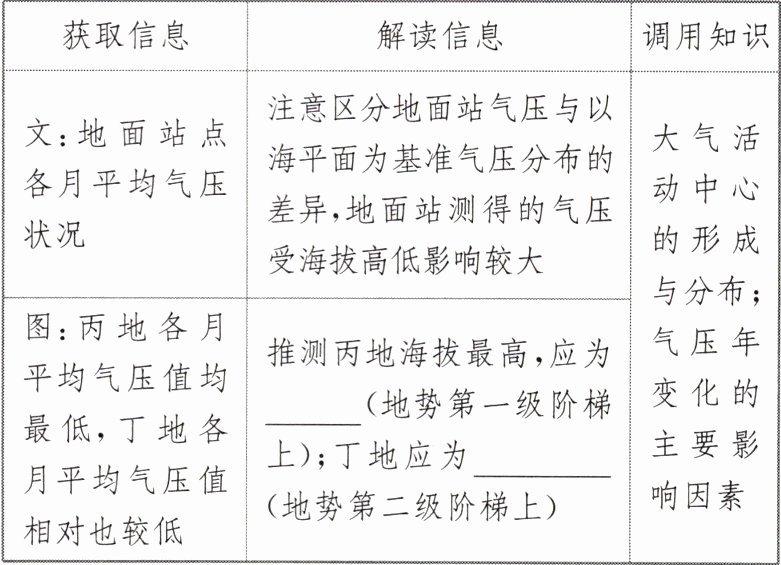 典例(2023·湖北卷)下图示意我国四个国家气象观测站测得的2018~2022年地面站点各月平均气压状况。据此完成(1)~(3)题。