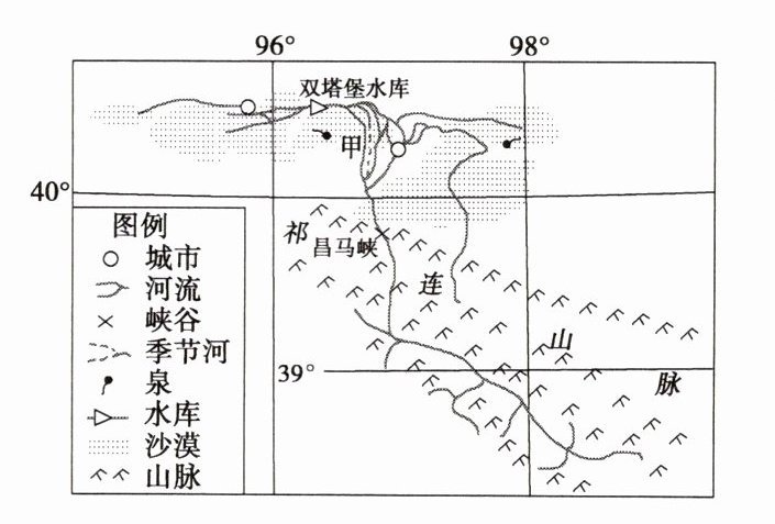 发源于祁连山区的疏勒河以昌马峡和双塔堡水库为界分上、中、下游。下图为疏勒河流域局部图。