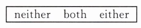 【归纳总结】both,neither,either 这三个词都指两者,both 表示“两者都”,作主语时,谓语动词用复数形式。neither 表示“两者都不”,either 表示“两者中的任何一个”。either,neither 作主语时谓语动词常用单数形式。这三个词都可单独使用,也可作定语。