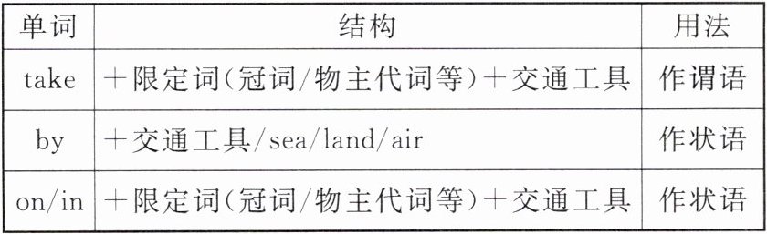 Point 1 辨析出行方式的表达:take, by, on 与 in