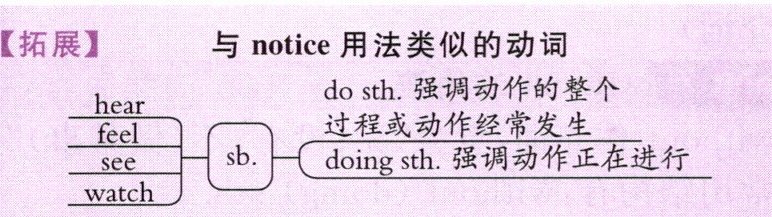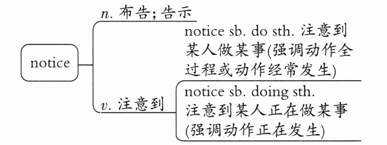 2. I noticed Lucy cry in the room. 我注意到露西在房间里哭。(不一定正在哭)