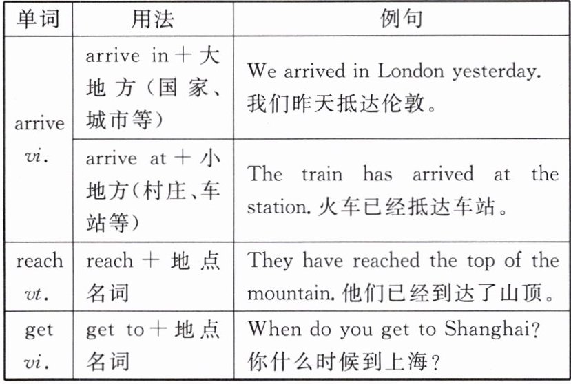 arrive/get + 地点副词(here, there, home 等),中间不使用任何介词。