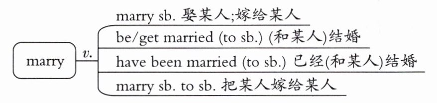 两者都可以和介词 to 连用(不和介词 with 连用),但 be married 表示状态,可以和 for/since 引导的时间状语连用; get married 表示瞬间动作,不可以和表示一段时间的时间状语连用。