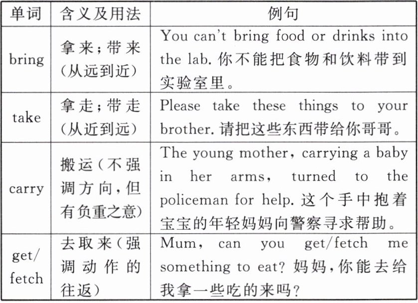 Point 5 辨析 bring, take, carry, get 与 fetch