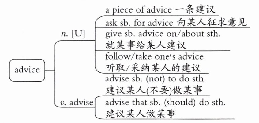 v. advise --> advise sb. (not) to do sth. 建议某人(不要)做某事