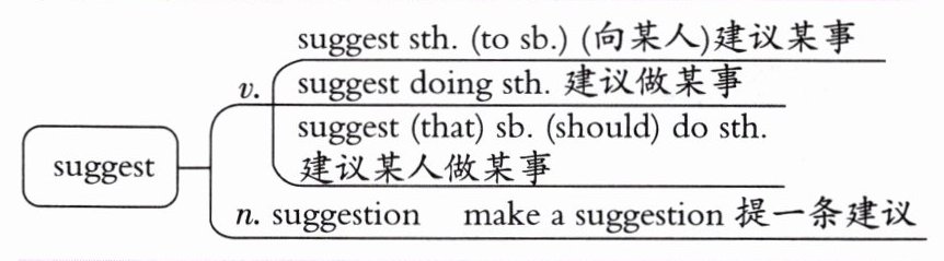 v. --> suggest (that) sb. (should) do sth. 建议某人做某事