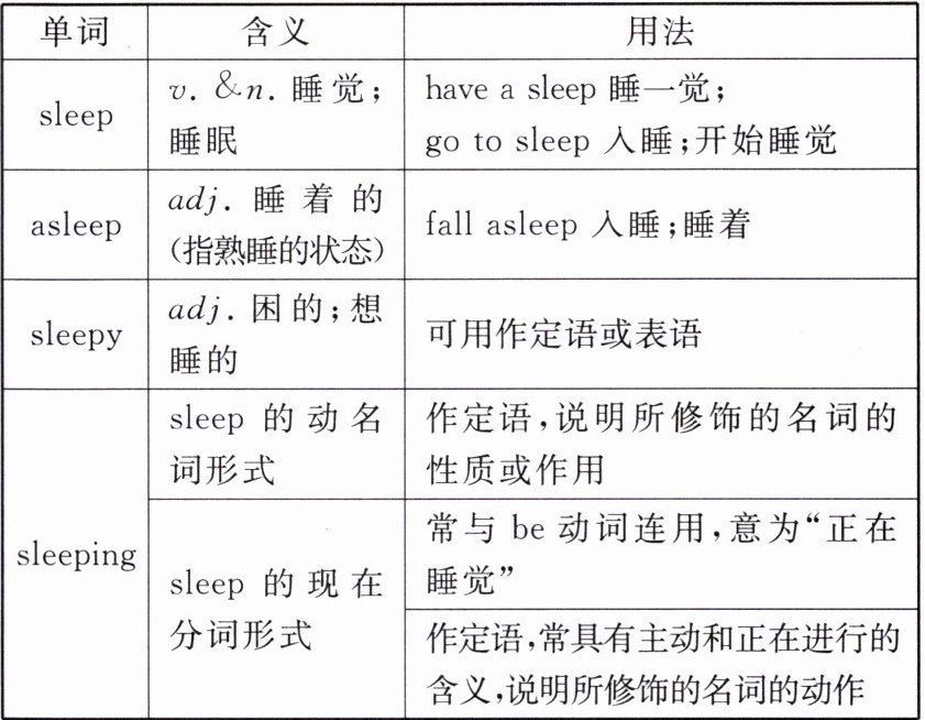 Point 4 辨析 sleep, asleep, sleepy 与 sleeping