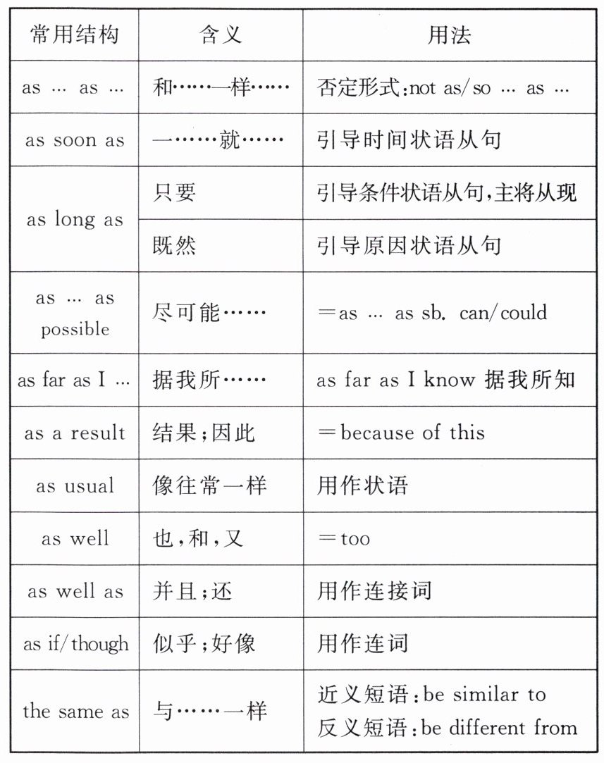 2. 根据 as 的用法填入适当的词语。