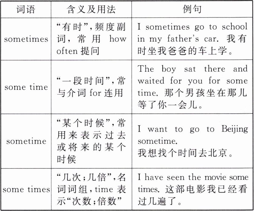 Point 5 辨析 sometimes,some time,sometime 与 some times