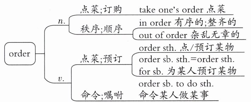 例 1. The room is out of order. Please keep it in order. 这间房乱七八糟。请收拾一下。