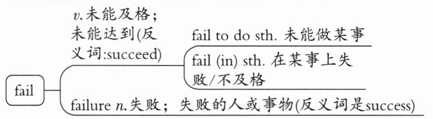 3. Bob always fails (in) his examinations. 鲍勃考试总是不及格。
