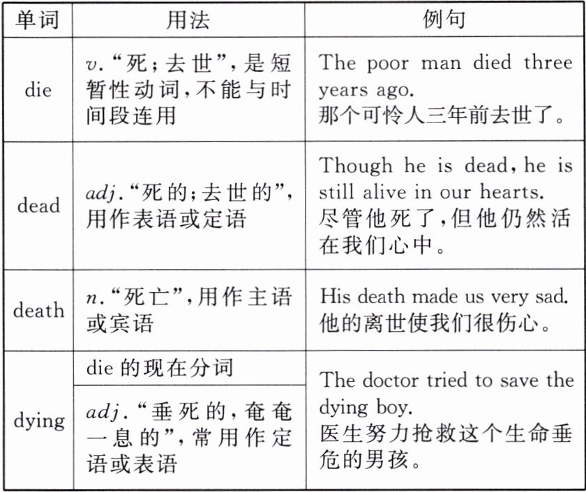 Point 3 辨析 die,dead,death 与 dying