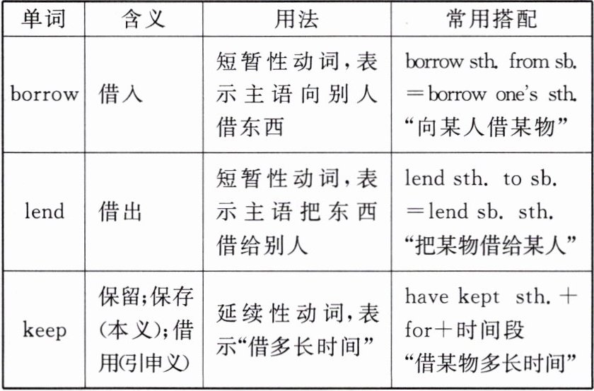 Point 4 辨析 borrow,lend 与 keep