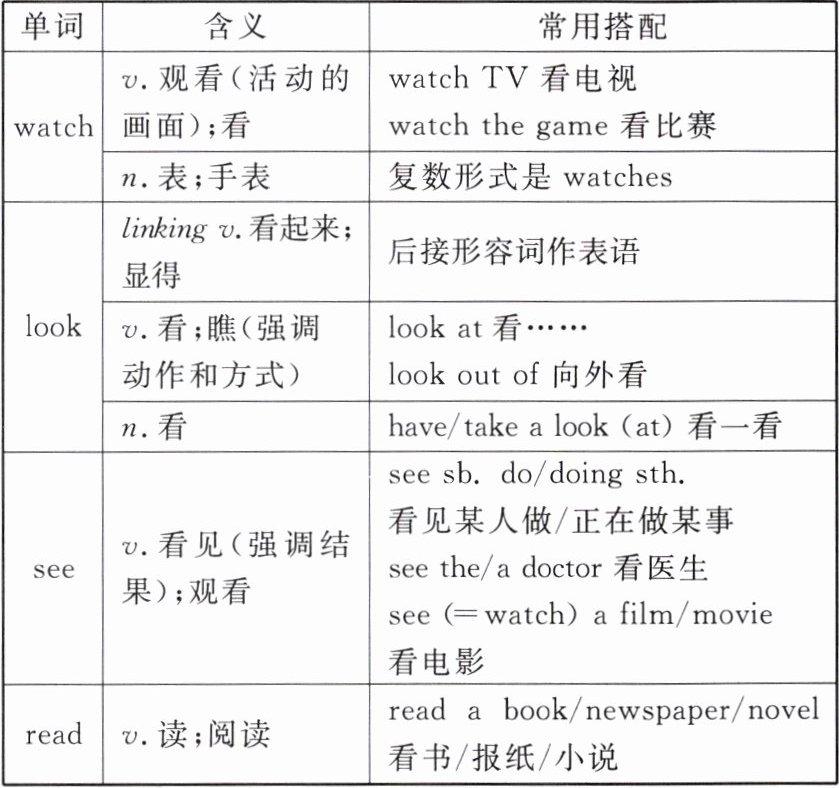 Point 2 辨析 watch, look, see 与 read