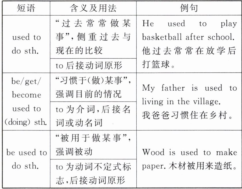 Point 3 辨析 used to do sth., be/get/become used to (doing) sth. 与 be used to do sth.