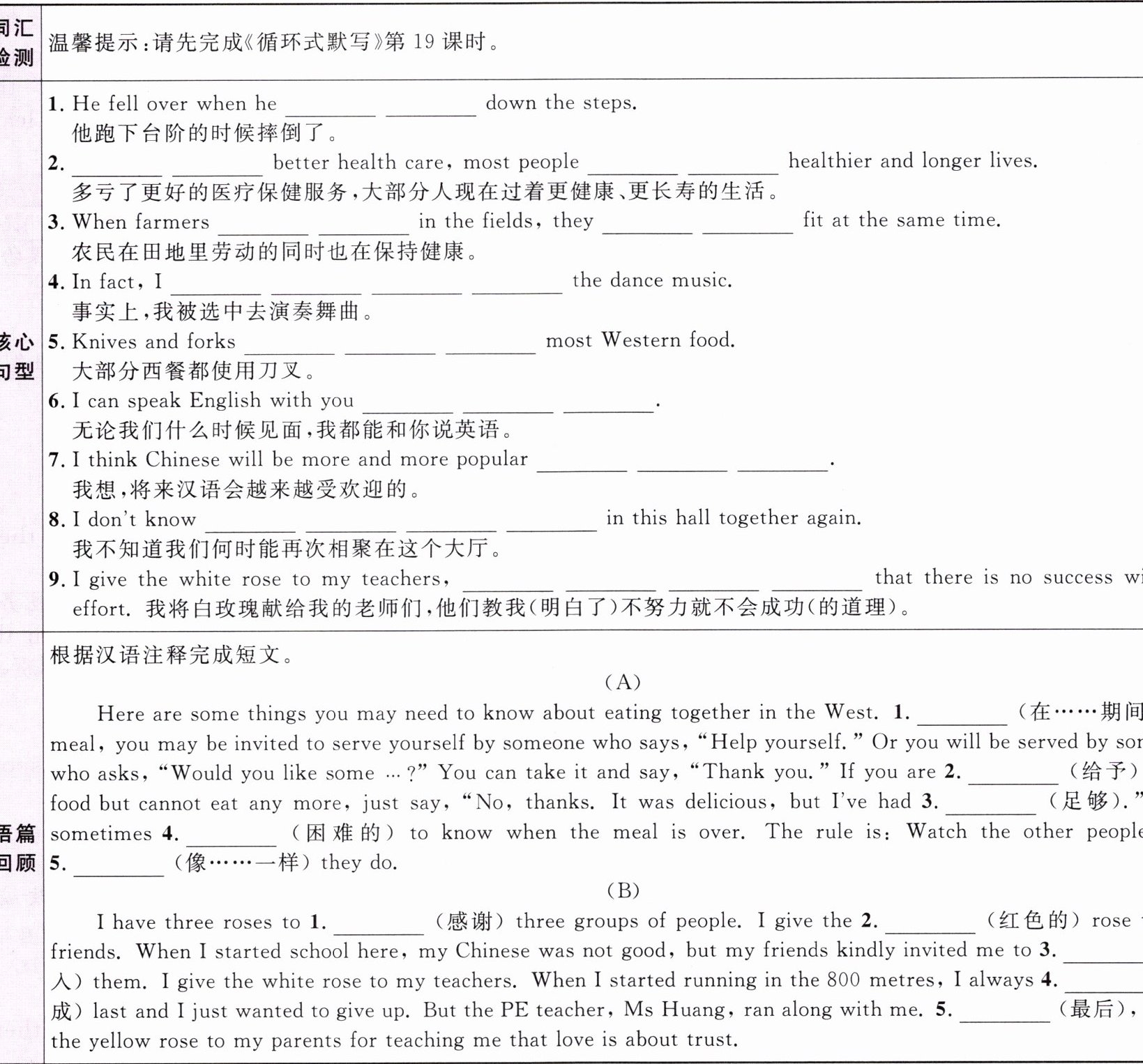 9. I give the white rose to my teachers, ______ ______ ______ ______ that there is no success without effort. 我将白玫瑰献给我的老师们,他们教我(明白了)不努力就不会成功(的道理)。