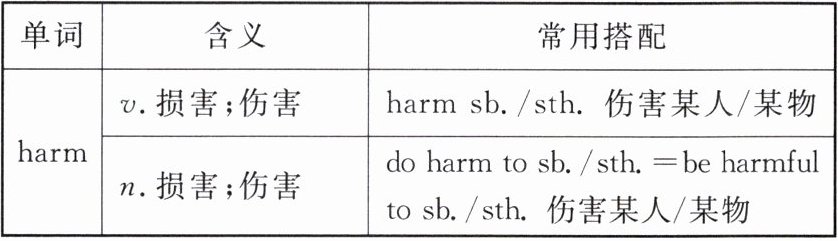 1. Words can do ______ (伤害) to other people. So we should think twice before saying something.