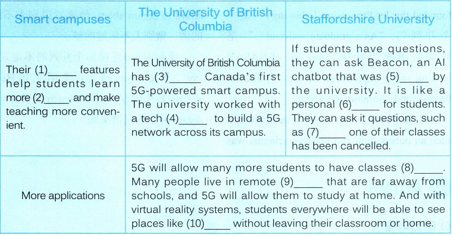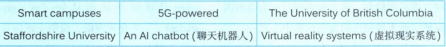 3. Suppose you live in the future. Write a brief summary about the technology in future smart campuses. Use the information in the table to help you.