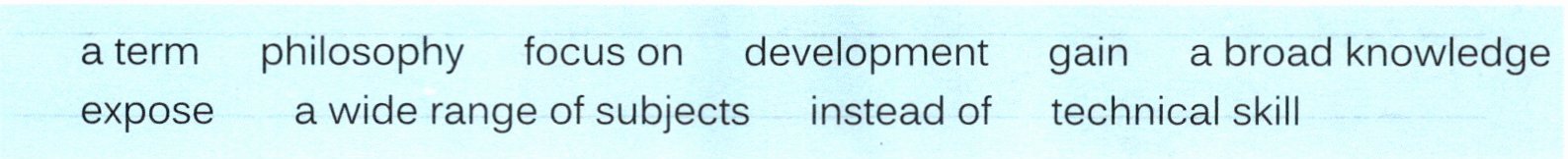 1. Can you introduce a liberal arts education in a few sentences? Use the vocabulary in the box and make any necessary changes.