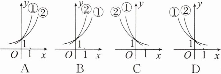 2.若$1>n>m>0$,则指数函数①$y = m^{x}$,②$y =n^{x}$的图象为 ( )