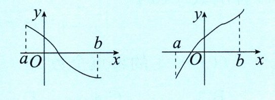 (3) 借助函数的单调性进行判断。若函数 $f(x)$ 在区间 $[a,b]$ 上的图象是一条连续不断的曲线,且在区间 $(a,b)$ 上单调,满足 $f(a)\cdot f(b)<0$,则函数 $f(x)$ 在区间 $(a,b)$ 上有且仅有一个零点,如图所示。