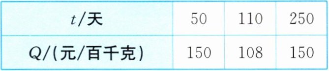 4. 某农产品从 $ 5 $ 月 $ 1 $ 日起开始上市,通过市场调查,得到该农产品种植成本 $ Q $(单位:元/百千克)与上市时间 $ t $(单位:天)的数据如下表:
