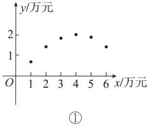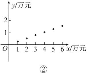 解:以投入额为横坐标,纯利润为纵坐标,在平面直角坐标系中作出散点图,如图所示(图①为A商品,图②为B商品),